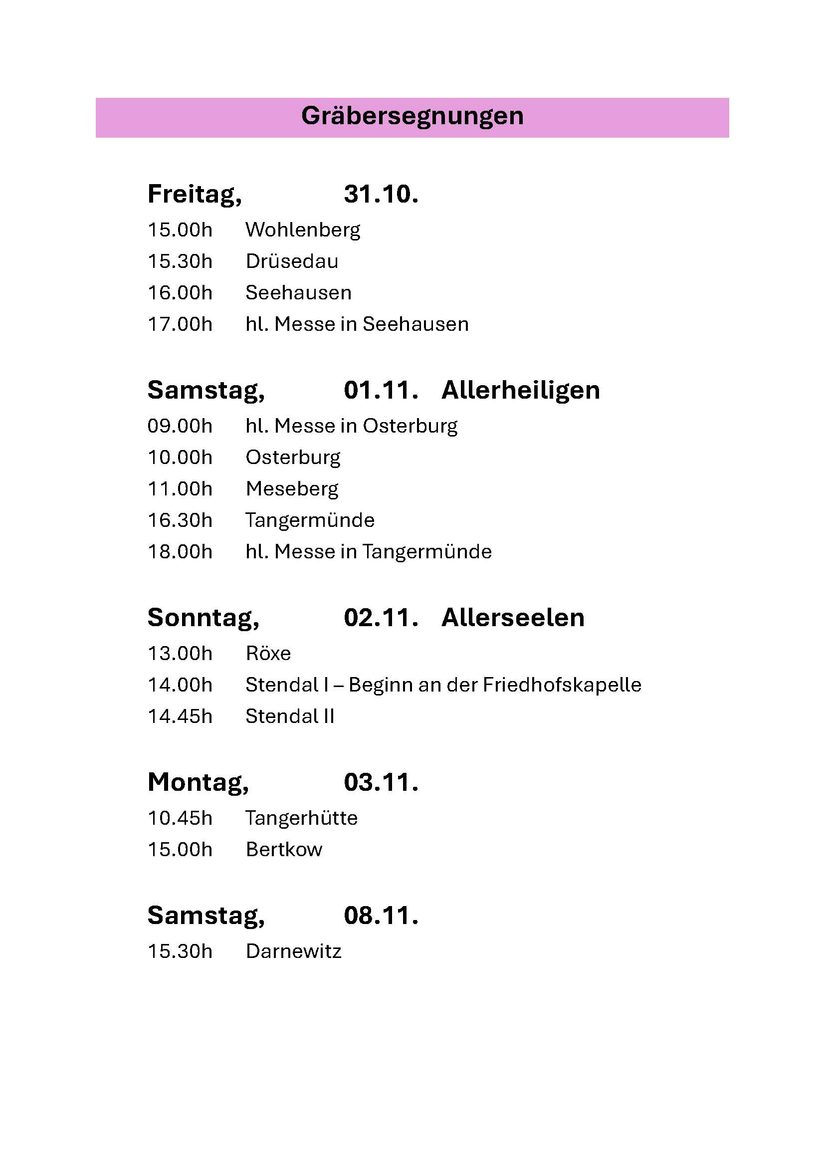 Termine finden Sie auch in den -> Pfarrbriefen.