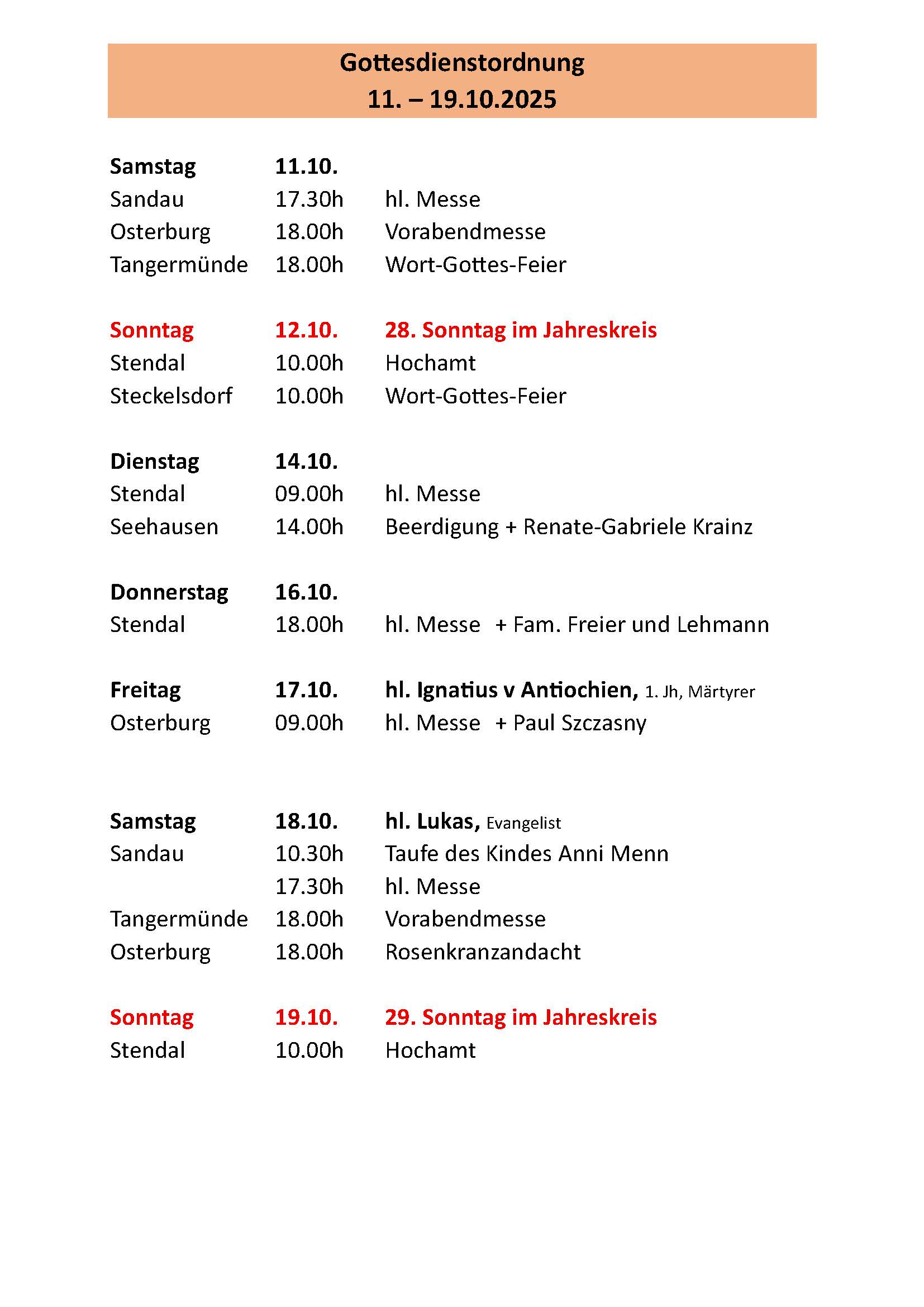 Samstag | 11.10. | 18:00 Vorabendmesse |