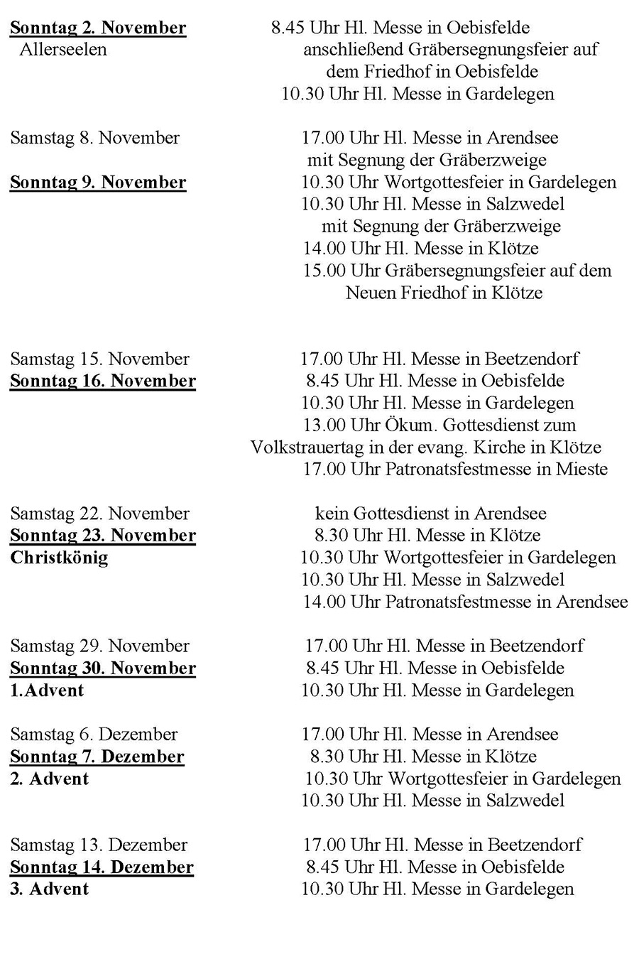 Vermeldungen für kath. Pfarreien St. Hildegard und St. Laurentius Gardelegen – Salzwedel – Arendsee - Beetzendorf – Klötze – Oebisfelde -Kalbe